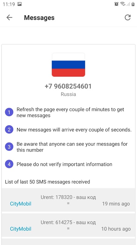VIRTUAL NUMBER IS A FREE SERVICE FOR RECEIVING SMS MESSAGES ONLINE. THERE IS NO NEED TO REGISTER. JUST SELECT YOUR PHONE NUMBER FROM THE APP