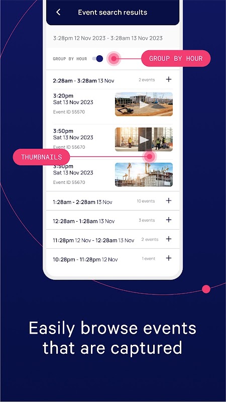 فیلمهای ویدیویی زنده با کیفیت بالا را تماشا کنید، رویدادهایی را که ضبط شدهاند به راحتی مرور کنید و به سرعت آلارمها، اعلانها یا تنظیمات را در دستگاههای خود پیکربندی کنید.