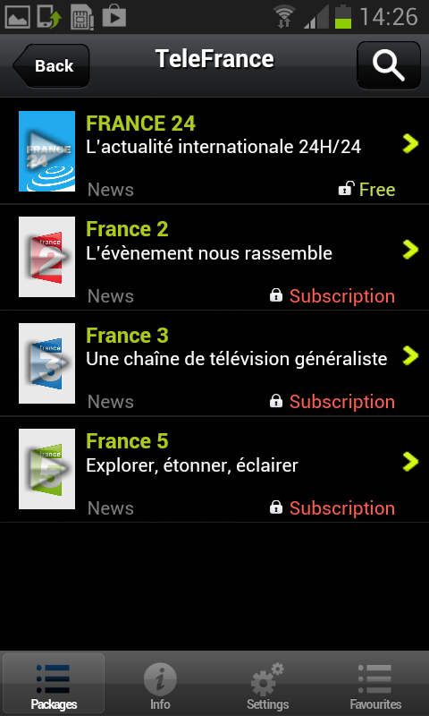 Téléfrance channels gather all the family and all the tastes. You can find cultural programs, French and international films, music, news, sports, etc. All this and even more on the same package.