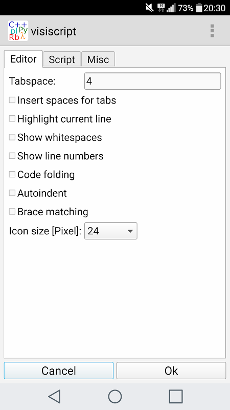 برای توابع پیشرفته (پیمایش در کد منبع ، یافتن پرونده ها ، رمزگذاری پرونده ها ، خروجی گرافیکی و پشتیبانی از اشکال زدایی برای پایتون و minscript) و مفسران اسکریپت های اضافی (minscript ، Lua ، Python ، Haskell / Hugs ، Scheme / Scheme48 ، newLisp) از VisiScriptExtensions استفاده کنید ماژول: https://www.google.com/url؟q=https://play.google.com/store/apps/details؟id=de.mneuroth.visiscriptexttextensions