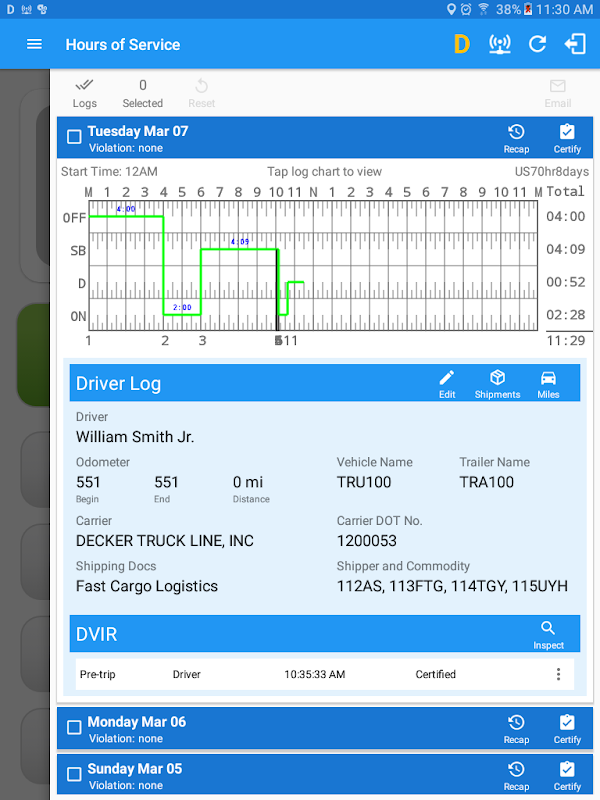 FMCSA سیاهههای مربوط الکترونیکی راه حل گواهی از جمله HOS، DVIR و IFTA