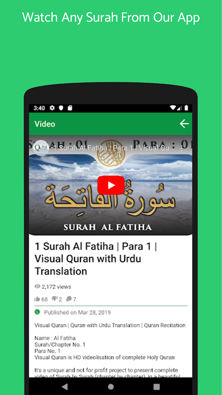 ارائه یک فیلم کامل از سوره توسط سوره (فصل به فصل) ، در یک ویدئوی زیبا با تیلاوت عربی و صدای اردو بر روی تاروما (ترجمه) یک پروژه بی نظیر و سودآور است.
