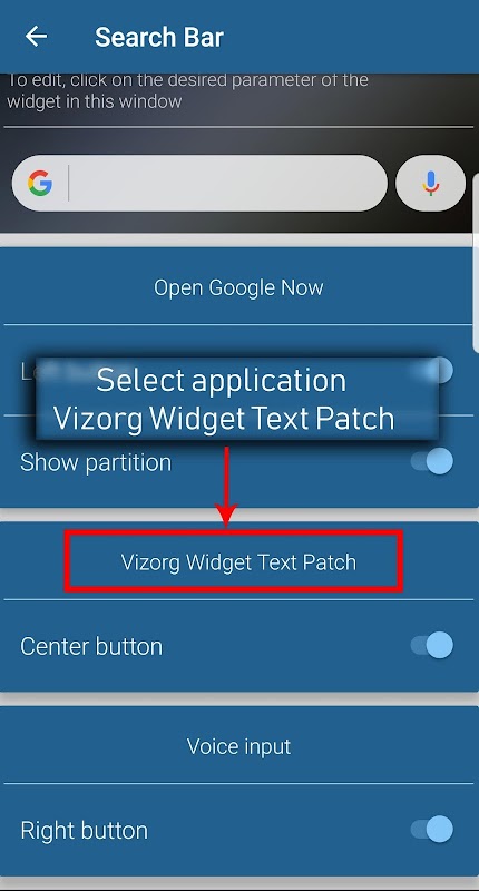 In instead of text input, select " Your app "and select"Vizorg Widget Text Patch".