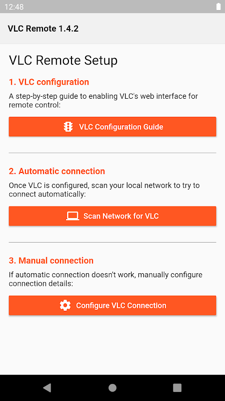 On first run, the app will guide you through configuring VLC for remote control and connecting to it.