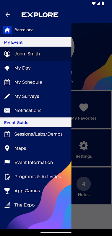 شرکتکنندگان در رویداد میتوانند به برنامههای شخصی، برنامه رویداد، نمایههای حامیان مالی، اطلاعات جلسه، رسانههای اجتماعی و موارد دیگر دسترسی داشته باشند.