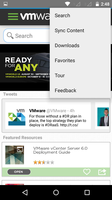The Mobile Knowledge Portal gives you access to VMware marketing and technical content. Use the application to watch installation videos, read product whitepapers, and learn best practices.