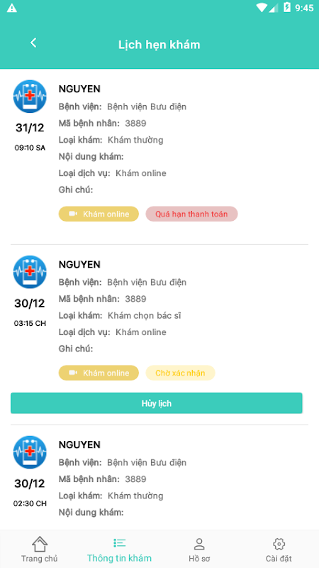 - Bổ sung thông báo sắp tới giờ hẹn khám.