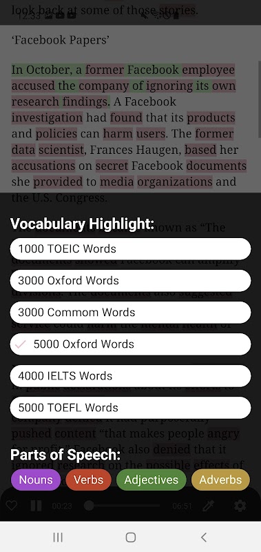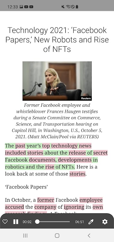 • ردیابی رونوشت: محتویات آهنگ گوش دادن برجسته می شود و به طور خودکار جمع می شود تا به شما کمک کند روی گوش دادن تمرکز کنید.