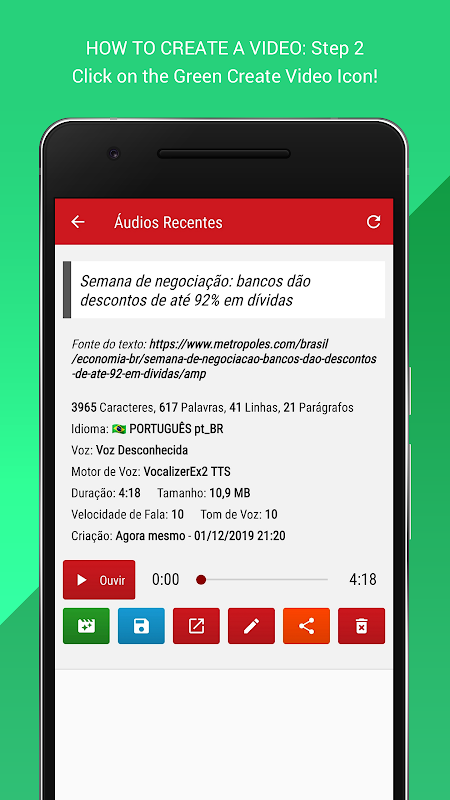Note: Voices like Felipe, Fernanda and Luciana in Portuguese then available on the "Vocalizer TTS" Voice engine just install it that our app will identify and put in the list of available voices.