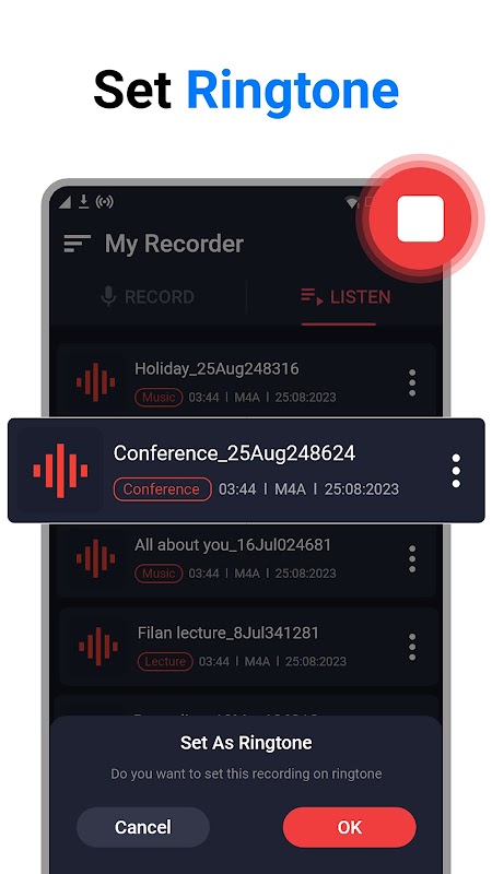 • موسیقی ضبط کنید و آن را به عنوان آهنگ زنگ خود تنظیم کنید. ضبط آسان موسیقی برای آهنگ های زنگ.