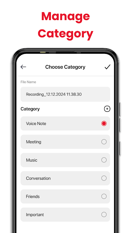 برای سازماندهی بهتر، ضبط های خود را به راحتی در دسته های سفارشی مرتب کنید. چه در حال مدیریت جلسات کاری، سخنرانیهای کلاس، یادداشتهای شخصی یا ایدههای خلاقانه باشید، یافتن ضبط مناسب سریع و بدون دردسر است.