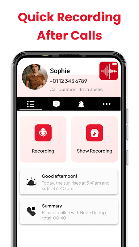 ضبط صدا با کیفیت بالا، سازماندهی فایل ها و اشتراک گذاری با قابلیت پس از تماس.