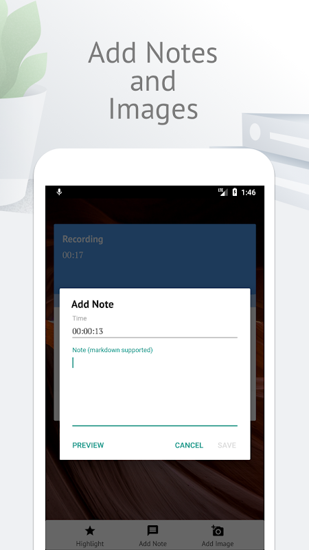 این فقط یک ضبط صوت خبرنگاری نیست، این ضبط صوت خبرنگاری هوشمند است. این تنها برنامه است که شما اجازه می دهد به طور خودکار تصاویری از اسلایدهای ارائه، یادداشت ها، جلسات تخته سفید و بیشتر اضافه کردن به ضبط آن را به غنی تر است.