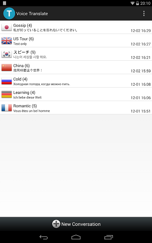 یک ابزار ترجمه ، صدای خود را ترجمه کنید و نتایج ترجمه را با صدای بلند بخوانید. اجازه دادن به شما برای سفر ، ارتباطات ، شبکه های اجتماعی دیگر مانعی در زبان نیست. از Voice Translator همچنین می توانید در هنگام یادگیری و درک یک ابزار زبان ، دیکشنری سفارشی خود استفاده کنید. صدای شما به صورت محلی ترجمه و ذخیره می شود.