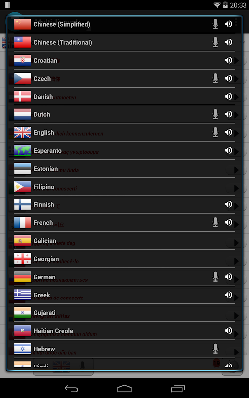 آفریقایی ، آلبانیایی ، عربی ، استونی ، بلغارستان ، ایسلند ، لهستان ، بوسنی ، دانمارکی ، آلمانی ، روسی ، فرانسوی ، فیلیپین ، فنلاند ، خمر ، گجراتی ، کره ای ، هلندی ، کاتالونیا ، چک ، کرواسی ، لاتین ، لتونی ، رومانی ، مراتی ، مالایایی ، مالایی ، مقدونیه ، بنگلادش ، میانمار ، نپال ، نروژ ، پرتغال ، ژاپن ، سوئد ، صربستان ، سینهالا ، اسپرانتو ، اسلوونی ، سواحیلی ، تلوگو ، تامیل ، تایلندی ، ترکیه ، ولز ، اردو ، اوکراین ، اسپانیا ، عبری ، یونان ، مجارستان ، ارمنستان ، ایتالیا ، هندی ، اندونزیایی سوندانی ، اندونزیایی ، اندونزیایی جاوه ای ، انگلیسی ، ویتنامی ، چینی سنتی ، چینی ساده ، کانتونی