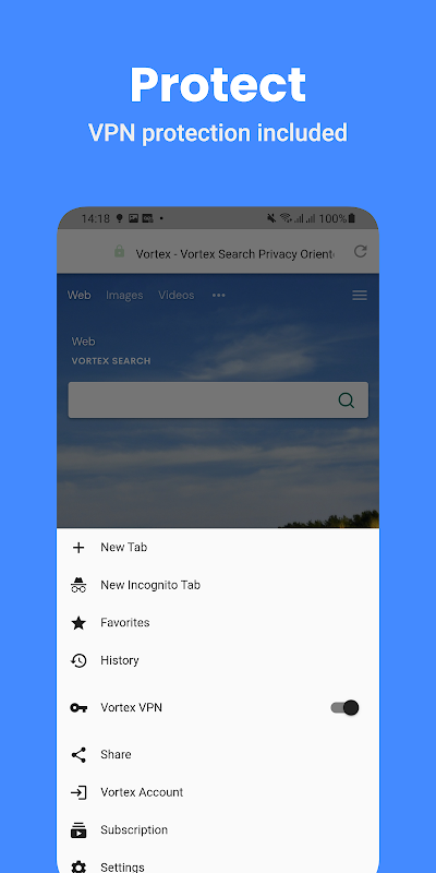 مرور ایمن با VPN. ناوبر ایمن با Ad-Block گنجانده شده است.
