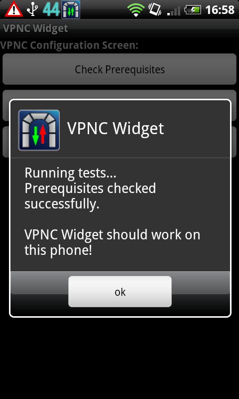 - Doubleclick widget to change preferences and checking prerequisites of phone (if doubleclick doesn't work, start Vpnc Widget as an App)