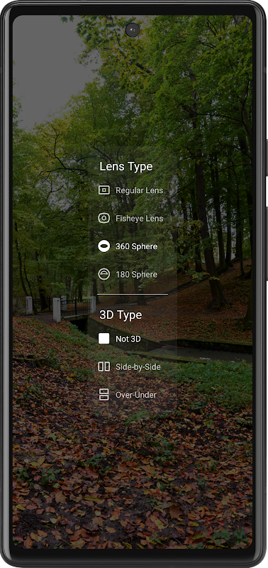 از عکاسی و فیلمبرداری با لنزهای استوانه ای مستطیلی 360 درجه و 180 درجه، لنز استاندارد و لنز چشم ماهی پشتیبانی می کند.