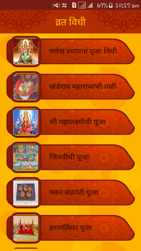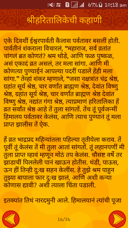 مراتی Vrat Katha و Puja به Vidhi مجموعه کامل از تمام سریع (vrat) داستان (کاتا) و Puja به Vidhi آیین هندو در marathi.Hindu است که دین از اعتماد و ایمان به خدا است. Upwas (سریع) راه ما را به نشان خدای عزیز ما است. در طول سریع ما نیاز به خواندن / شنیدن این که مربوط روز داستان اساطیری. در این برنامه ما سعی کردم که شامل هر vrat مهم هندوها در یک سال تقویم.