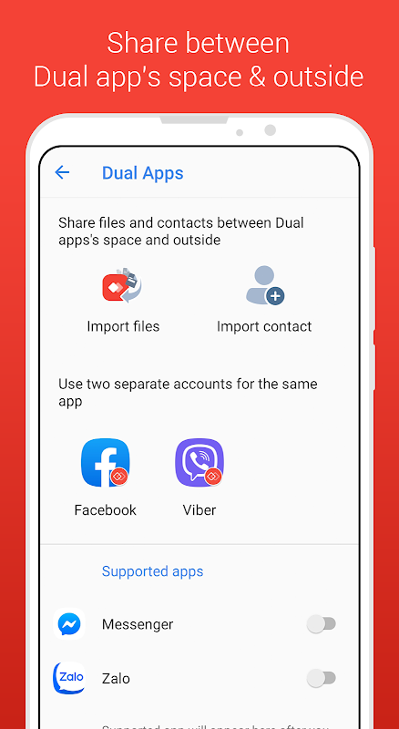 • برای محافظت از داده ها ، کاربر می تواند رمز عبور امنیتی را برای برنامه های دوگانه تنظیم کند.
