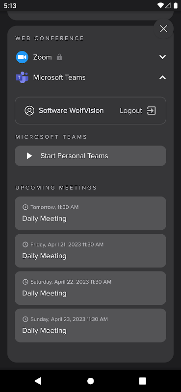یک کارکرد کنترل آسان از راه دور با استفاده از کنترل از راه دور امکان استفاده از عملکرد کنترل از راه دور را برای شما فراهم می کند تا بتوانند به صورت شخصی از طریق دستگاه همراه خود به یک وایولایزر WolfVision یا Cynap ، Cynap Core ، Cynap Pure Pro یا سیستم Cynap Pure متصل شوند و سپس از رابط صفحه نمایش لمسی بصری استفاده کنند تا محتوای محتوای آنها به صورت بی سیم از دستگاه تلفن همراه خود کنترل شود. .
