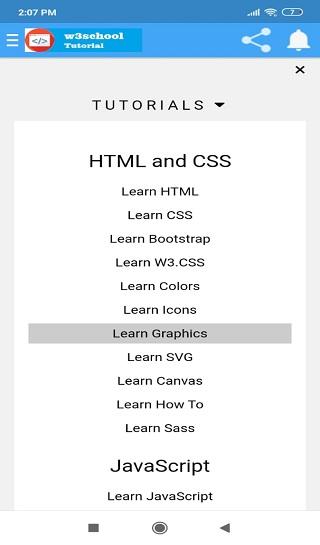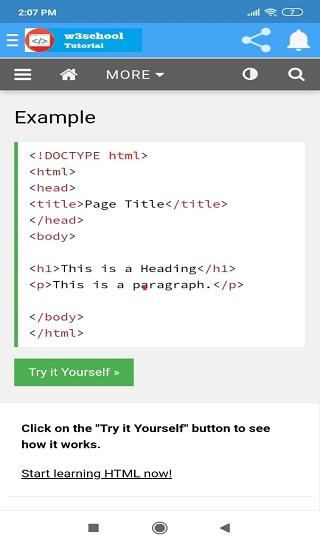 W3schools is a android app, which will help you to learn HTML, CSS, PHP, Java Script, J query, Asp, Bootstrap, SQL and other web programming languages.
