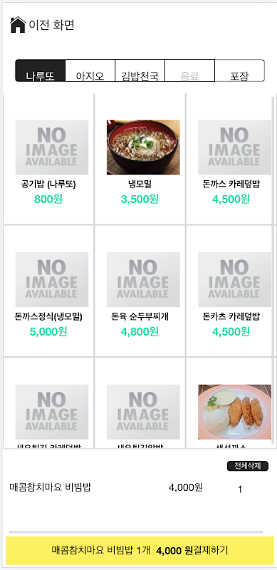 안드로이드 장비에서 실행되는 키오스크 앱