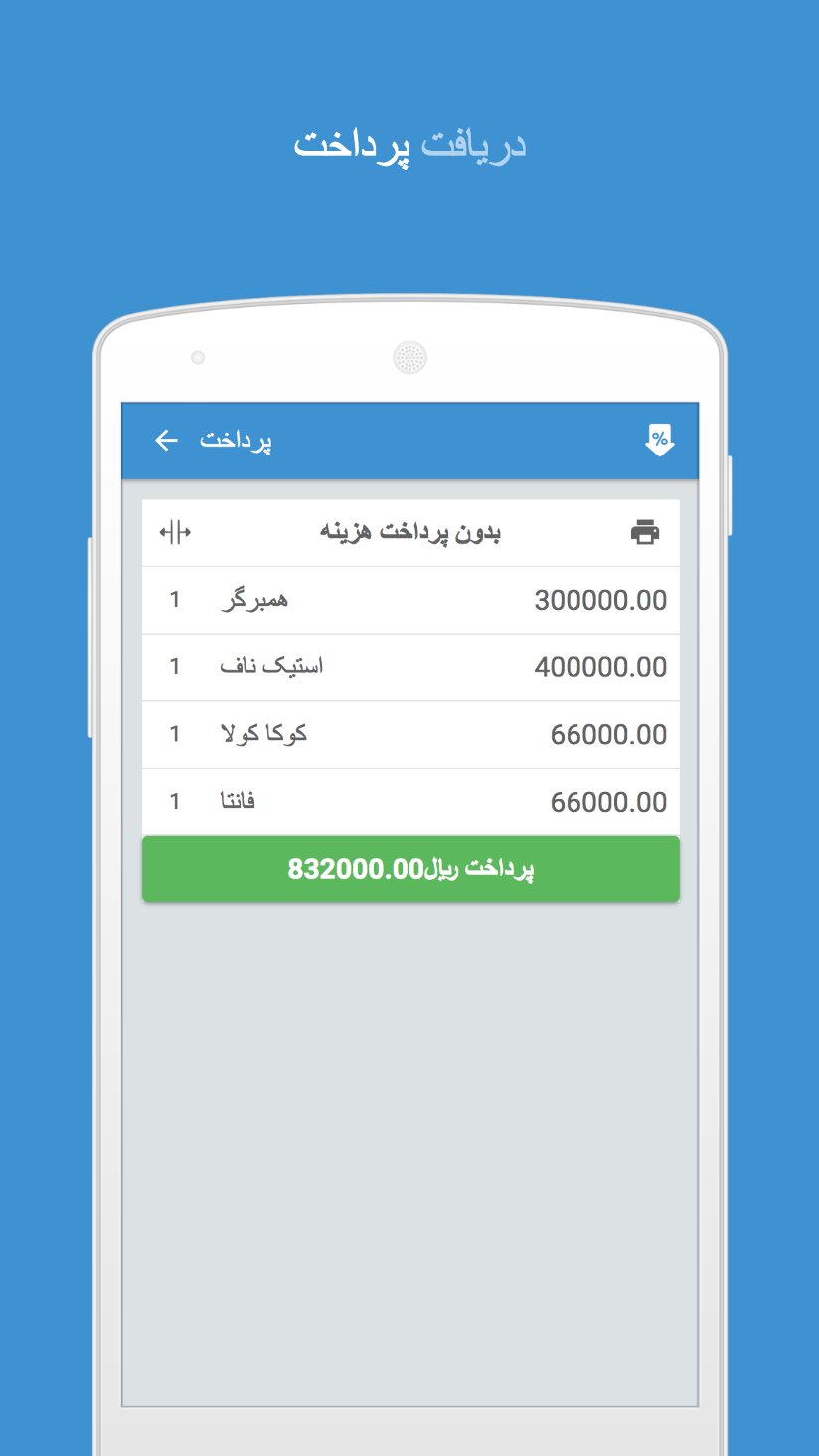 ویژگی های بیشتر: - توجه داشته باشید برای مورد - اضافه اضافی برای آیتم - دوره ها - تقسیم لایحه - هزینه خدمات - مالیات - چاپ روزانه گزارش - گزارش صادرات به. CSV - ورود با PIN - چاپ با استفاده از چاپگر حرارتی