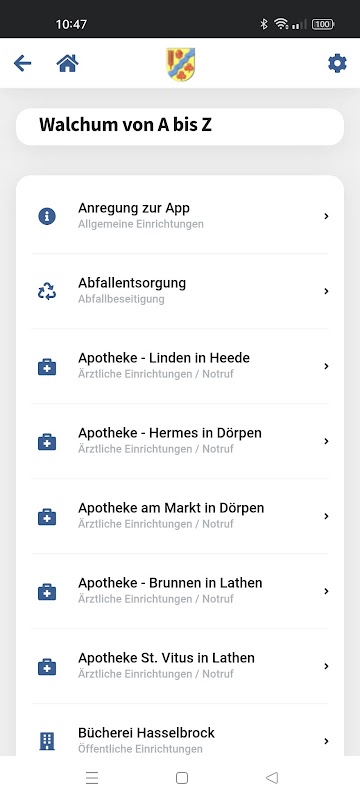 این برنامه اطلاعاتی در مورد تاریخ باشگاه ها، گروه ها و انجمن ها از روستای Walchum (شهرداری Dörpen) در Emsland ارائه می دهد. به سادگی گروه خود، دوره مورد نظر را انتخاب کنید و قرارهای محلی را در همه جا نمایش دهید.