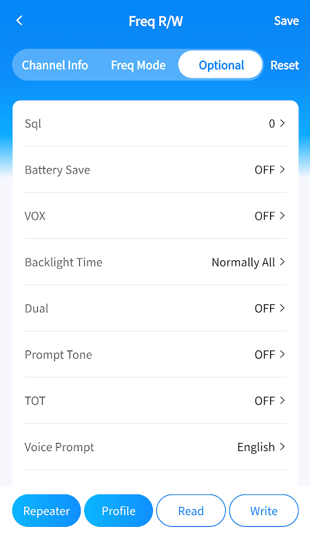 Walkie-talkie read and write frequency function and community, users can read and write parameters on the walkie-talkie, set the parameter scheme, and can share the scheme to friends or publish in the community.