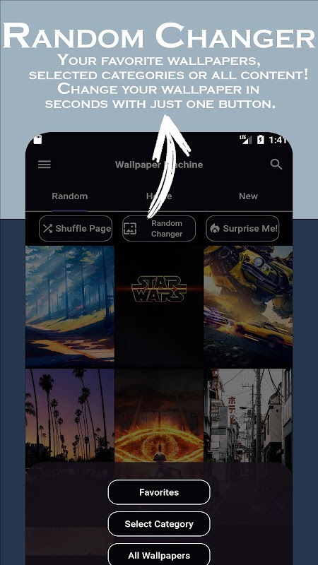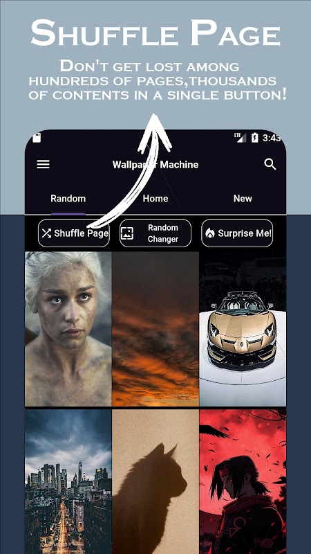 اما جایی برای معمولی وجود ندارد! با مهیج ترین ویژگی های دستگاه کاغذ دیواری با صفحه تصادفی آشنا شوید. این صفحه شما را به سفری شگفت انگیز می برد. صفحه به صفحه تصاویر پس زمینه را با دکمه Shuffle کشف کنید، یا دکمه Surprise Me را برای یک تجربه کاملا غیرمنتظره لمس کنید!