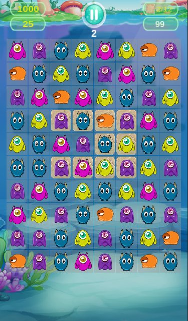-Liberation monster : touch and connect three or more monsters to splash them.