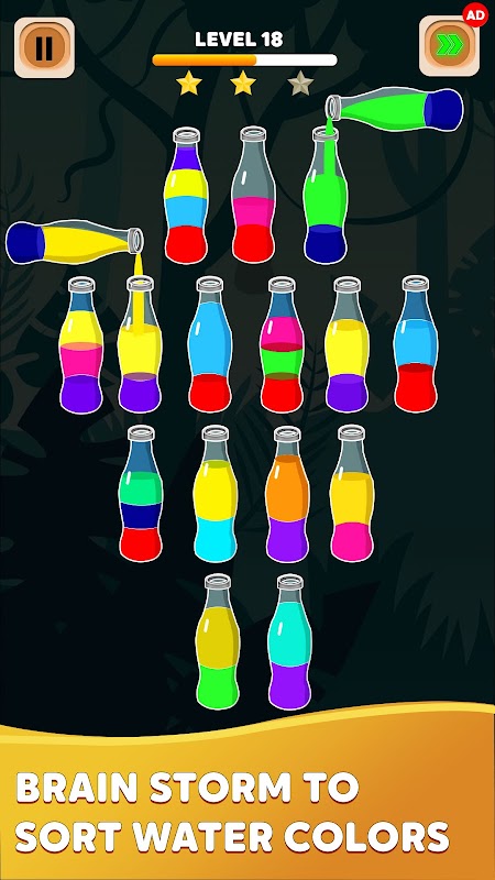 اساس بازی طبقه بندی رنگ ها در بطری های مختلف است. را
