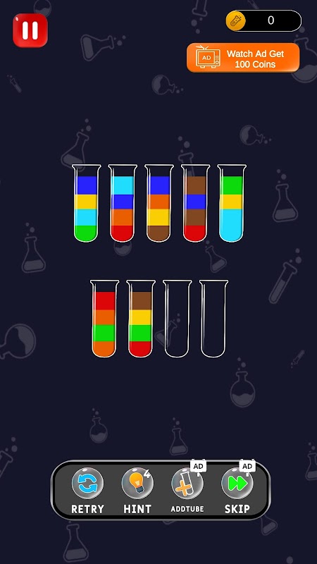 این دسته بندی آب رنگی سه بعدی یک بازی بسیار آسان و چالش برانگیز است. تنها کاری که باید در این بازی تطبیق رنگ انجام دهید این است که از مغز خود استفاده کنید و رنگ ها را به درستی در هر لوله مرتب کنید. این پازل رنگی شگفت انگیز مرتب سازی آب شما را ساعت ها به خود جذب می کند. سطوح بیشتر و بیشتری را در این بازی های مرتب سازی مطابقت رنگی باز کنید. هنگام حل قطعات پازل مرتب سازی آب مراقب باشید تا مطمئن شوید که گیر نمی کنید. از پازل تطبیق رنگ آب سرگرم کننده لذت ببرید.