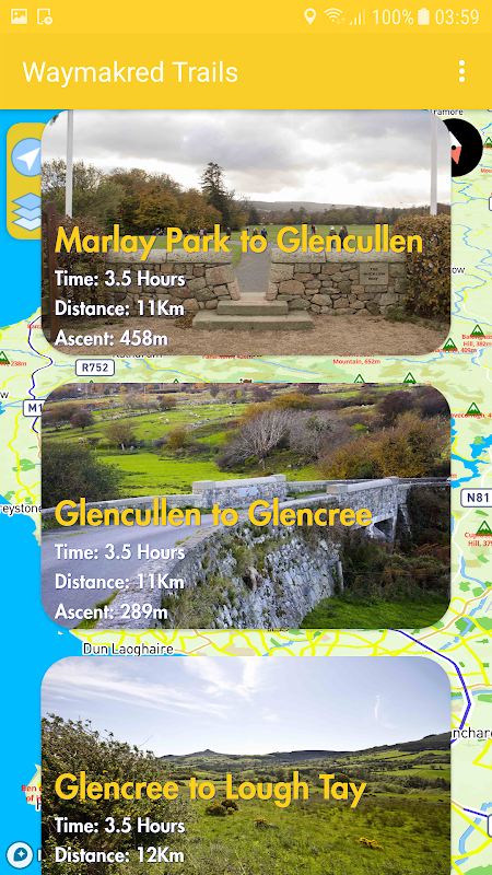 همه این نقشه ها برای دانلود را برای استفاده آفلاین در دسترس هستند. هر عنصر از برنامه در مسیرهای پیاده روی ایرلندی برای استفاده آفلاین در حالت هواپیما تست شده برای ذخیره باتری.