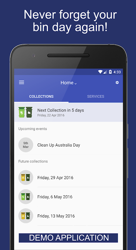This app demonstrates all the features of the What Bin Day - Council Services platform. The app is for Waste Education officers and anybody in councils or municipalities wishing to learn more about the WBD platform.