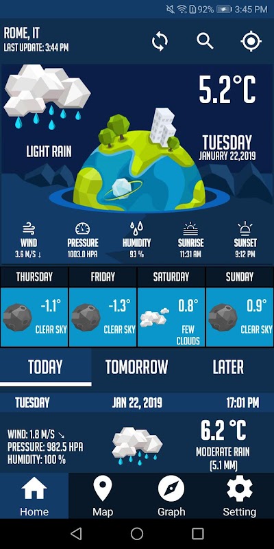 ☀️ This daily weather app display current temperature, daily and hourly forecasts, sunrise and sunset time, humidity, wind speed and air pressure with weather today & weather tomorrow.