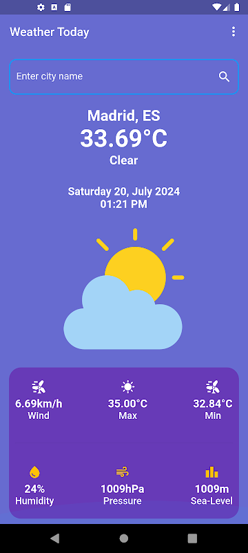 اطلاعات دقیق و به روز آب و هوا را برای امروز به شما می دهد. با یک رابط کاربر پسند، فوراً شرایط فعلی، دما و موارد دیگر را بررسی کنید. با جزئیات دقیق آب و هوا در نوک انگشتان خود مطلع باشید و از روز خود نهایت استفاده را ببرید.