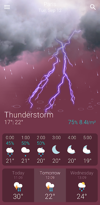 - Chance of precipitation for hourly and daily forecasts.
