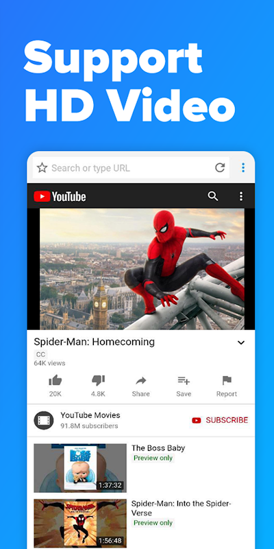 Increase internet speed ,save data and browse without ads by adblocker feature thisbrowser is an adblocker browser which can save internet data from wifi and 3G/4G/5G network by blocking annoying ads. this feature help you to save data ,increase internet speed and save your money.