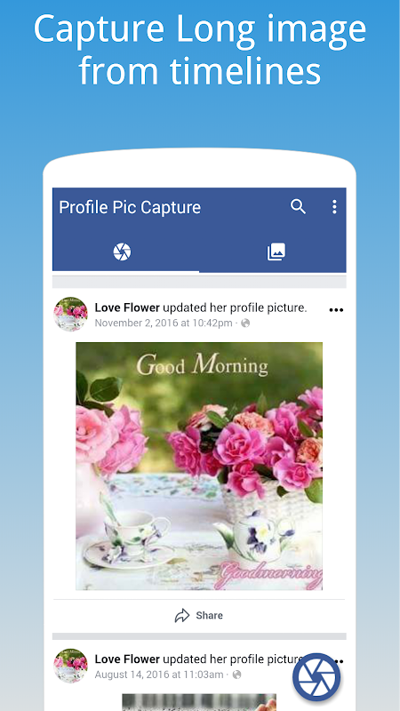 Long image Capture,gives you facility to store large amount of data in single view you can share your friends Facebook profile to your friends