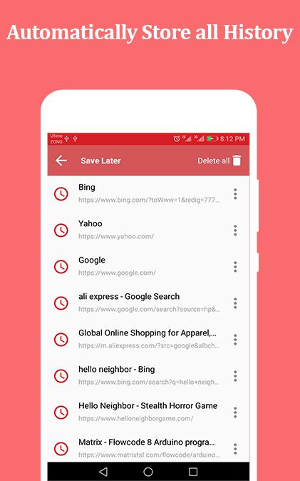 💥 به طور خودکار ذخیره تاریخ برای مشاهده تاریخچه لینک های باز شده است