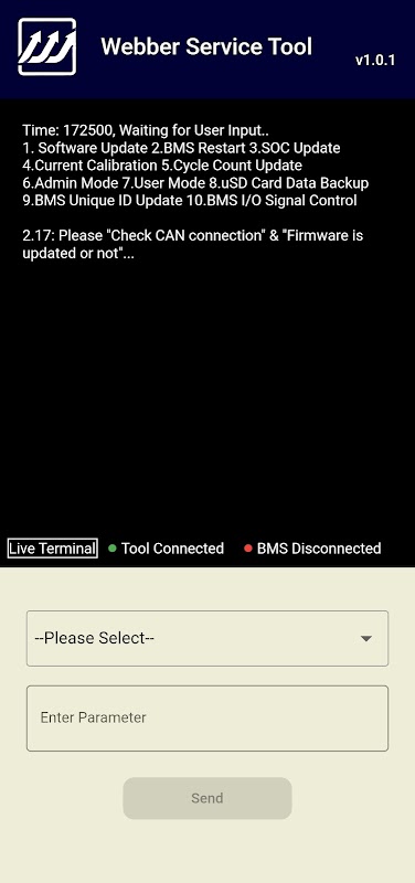 برنامه رسمی تشخیصی Webber ElectroCorp که به شما امکان می دهد BMS را زیر انگشتان خود کنترل کنید.