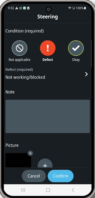 اپلیکیشن موبایل Webfleet Vehicle Check به راننده این امکان را میدهد که هرگونه نقص خودرو، از جمله مشکلات تایر را به صورت دیجیتالی گزارش دهد، که این امر باعث کاهش زمان صرف شده برای بازرسی خودرو و حذف کاغذبازیهای وقتگیر از این فرآیند میشود. مدیر ناوگان یک اعلان فوری دریافت میکند و وظایف تعمیر و نگهداری را میتوان با یک کلیک انجام داد.