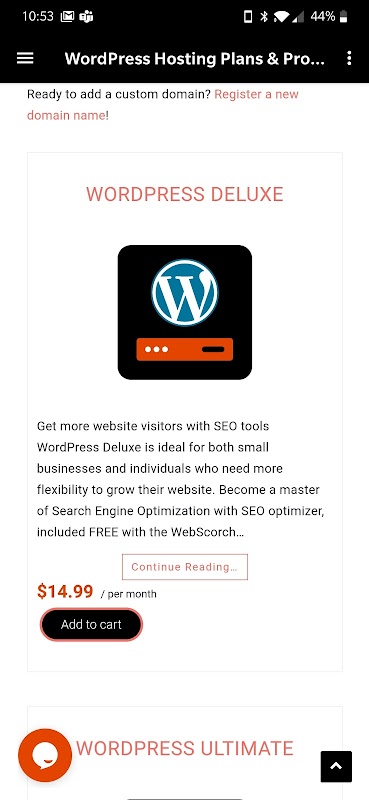 Browse website hosting plans, SEO, business email plans, Managed WordPress services, marketing tools, web domains, and more with WebScorch for Android!