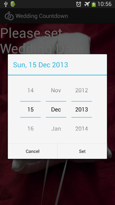 شمارش معکوس روز، ساعت، دقیقه و ثانیه تا عروسی خود را با این برنامه است که شما را زمان دقیق تا روز خاص خود را! همچنین شمارش معکوس سفارشی با تنظیم تصویر خود را در پس زمینه، و تنظیم رنگ متن.
