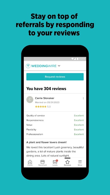 4. بررسی. به راحتی نظرات زوجین را درخواست کنید و به آنها پاسخ دهید تا از ارجاعات مطلع شوید و تجارت عروسی خود را در حال رشد نگه دارید.