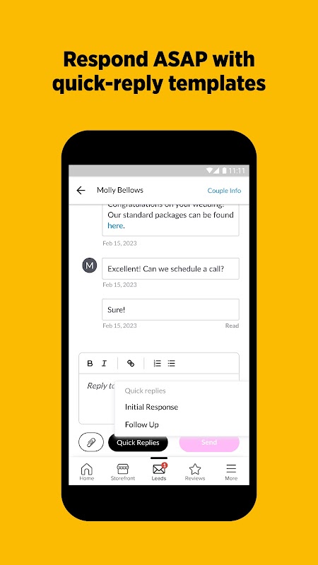2. منجر می شود. از سرنخهای فروش خود مطلع شوید، از هر جایی به آنها دسترسی داشته باشید - مستقیماً از تلفن خود - و به سرعت به زوجها پاسخ دهید تا کسب و کارشان را برنده شوید.