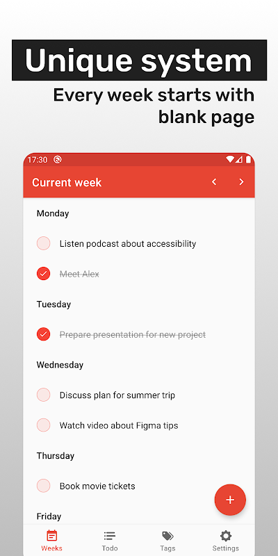 All tasks from previous weeks are saved in the archive and you can review it anytime.
