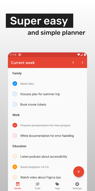 APKPure از تأیید امضای نرمافزار برای اطمینان از دانلودهای بدون ویروس APK Week planner: Todo list استفاده میکند.